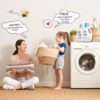 Giặt máy: Đổ nước giặt vào khay chứa theo tỷ lệ 30ml cho 10-15 chiếc quần áo trẻ em.